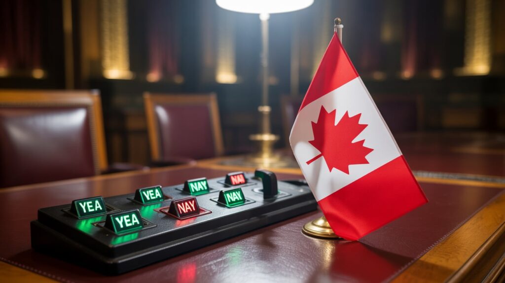 തുടർച്ചയായ മൂന്നാമത്തെ ആഴ്ചയിലും നടന്ന വിശ്വാസ വോട്ടെടുപ്പിൽ പ്രധാനമന്ത്രി Mark Carney-യുടെ ന്യൂനപക്ഷ Liberal സർക്കാർ കഷ്ടിച്ച് രക്ഷപ്പെട്ടു. 2025 ഏപ്രിലിലെ തിരഞ്ഞെടുപ്പിന് ശേഷം ഏഴ് മാസത്തിനുള്ളിൽ വീണ്ടും തിരഞ്ഞെടുപ്പ് നടത്താൻ പ്രതിപക്ഷം തയ്യാറാകാതിരുന്നതിനാൽ, 2025 നവംബർ 17-ന് 170-168 എന്ന നേരിയ ഭൂരിപക്ഷത്തിൽ ഫെഡറൽ ബജറ്റ് House of Commons പാസാക്കി.